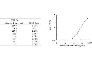 Average the duplicate readings for each standard, control, and sample and subtract the average zero standard optical density. Create a standard curve by reducing the data using computer software capable of generating a four parameter logistic (4-PL) curve-fit. As an alternative, construct a standard curve by plotting the mean absorbance for each standard on the x-axis against the concentration on the y-axis and draw a best fit curve through the points on the graph. The data may be linearized by plotting the log of the SAA concentrations versus the log of the O.D. and the best fit line can be determined by regression analysis. It is recommended to use some related software to do this calculation, such as curve expert 13.0. This procedure will produce an adequate but less precise fit of the data. If samples have been diluted, the concentration read from the standard curve must be multiplied by the dilution factor.