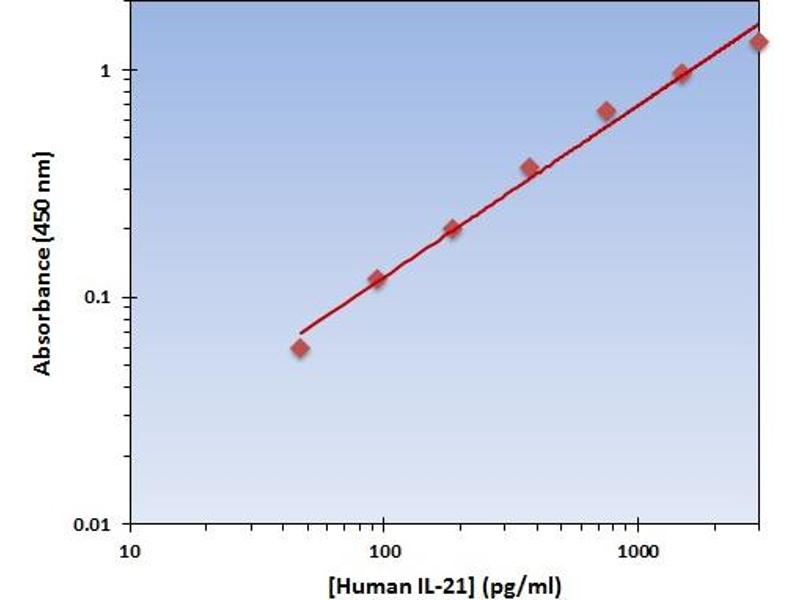 - The Human IL-21 ELISA Kit allows for the detection and quantification of endogenous levels of natural and/or recombinant Human IL-21 proteins within the range of 46-3000 pg/mL.