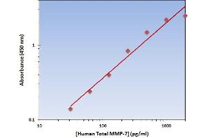 - The Human Total MMP-7 ELISA Kit allows for the detection and quantification of endogenous levels of natural and/or recombinant Human Total MMP-7 proteins within the range of 32-2000 pg/mL.