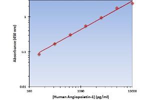 - The Human Angiopoietin-1 ELISA Kit allows for the detection and quantification of endogenous levels of natural and/or recombinant Human Angiopoietin-1 proteins within the range of 157-10000 pg/mL.