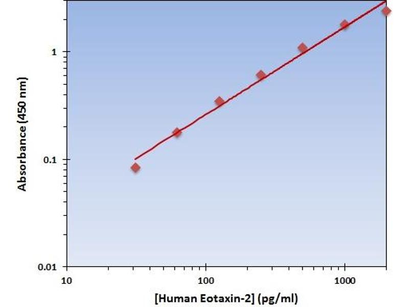 - The Human Eotaxin-2 ELISA Kit allows for the detection and quantification of endogenous levels of natural and/or recombinant Human Eotaxin-2 proteins within the range of 32-2000 pg/mL.