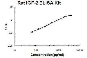- rat IGF-2 ELISA Kit was based on standard sandwich enzyme-linked immune-sorbent assay technology. A monoclonal antibody from mouse specific for IGF-2 has been precoated onto 96-well plates. Standards(E.coli, A25-E91) and test samples are added to the wells, a biotinylated detection polyclonal antibody from goat specific for IGF-2 is added subsequently and then followed by washing with PBS or TBS buffer. Avidin-Biotin-Peroxidase Complex was added and unbound conjugates were washed away with PBS or TBS buffer. HRP substrate TMB was used to visualize HRP enzymatic reaction. TMB was catalyzed by HRP to produce a blue color product that changed into yellow after adding acidic stop solution. The density of yellow is proportional to the rat IGF-2 amount of sample captured in plate.