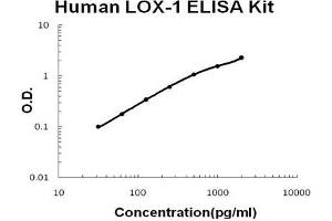 - human LOX-1 ELISA Kit was based on standard sandwich enzyme-linked immune-sorbent assay technology. A monoclonal antibody from mouse specific for LOX-1 has been precoated onto 96-well plates. Standards(NSO, S61-Q273) and test samples are added to the wells, a biotinylated detection polyclonal antibody from goat specific for LOX-1 is added subsequently and then followed by washing with PBS or TBS buffer. Avidin-Biotin-Peroxidase Complex was added and unbound conjugates were washed away with PBS or TBS buffer. HRP substrate TMB was used to visualize HRP enzymatic reaction. TMB was catalyzed by HRP to produce a blue color product that changed into yellow after adding acidic stop solution. The density of yellow is proportional to the human LOX-1 amount of sample captured in plate.