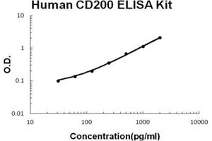 - human CD200 ELISA Kit was based on standard sandwich enzyme-linked immune-sorbent assay technology. A monoclonal antibody from mouse specific for CD200 has been precoated onto 96-well plates. Standards(NSO, Q31-G232) and test samples are added to the wells, a biotinylated detection polyclonal antibody from goat specific for CD200 is added subsequently and then followed by washing with PBS or TBS buffer. Avidin-Biotin-Peroxidase Complex was added and unbound conjugates were washed away with PBS or TBS buffer. HRP substrate TMB was used to visualize HRP enzymatic reaction. TMB was catalyzed by HRP to produce a blue color product that changed into yellow after adding acidic stop solution. The density of yellow is proportional to the human CD200 amount of sample captured in plate.