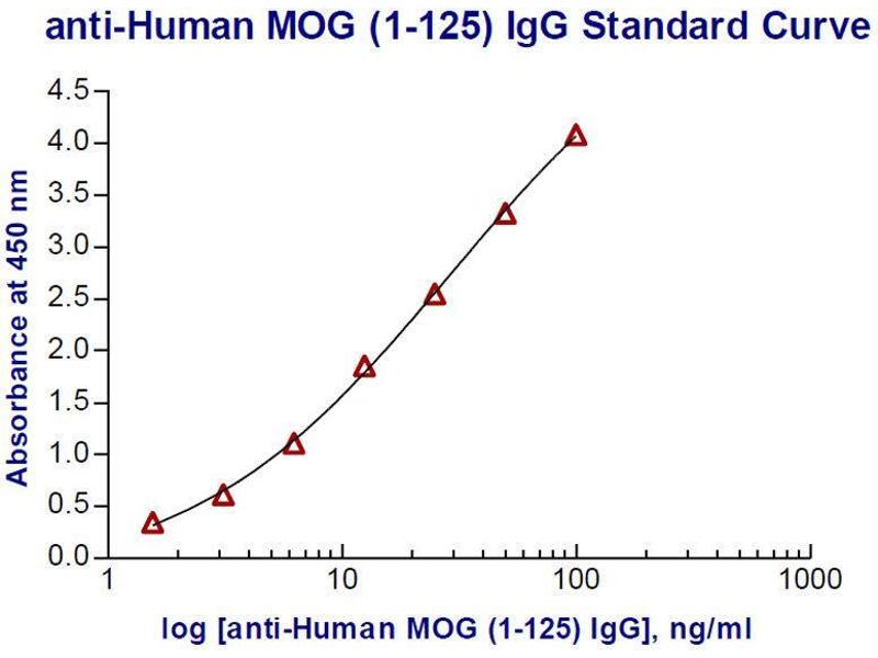 - This kit is optimized to detect anti-human MOG (1-125) IgG in human samples. Wells are pre-coated with recombinant human MOG (1-125) protein and pre-blocked with proprietary solution. The amount of anti- human MOG IgG in serum or plasma is quantified using ELISA. Human anti-Human MOG (1-125)standard is included. Ample materials and reagents are provided to perform 96 assays.