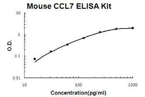 - mouse CCL7 ELISA Kit was based on standard sandwich enzyme-linked immune-sorbent assay technology. A monoclonal antibody from rat specific for CCL7 has been precoated onto 96-well plates. Standards(E.coli, Q24-P97) and test samples are added to the wells, a biotinylated detection polyclonal antibody from goat specific for CCL7 is added subsequently and then followed by washing with PBS or TBS buffer. Avidin-Biotin-Peroxidase Complex was added and unbound conjugates were washed away with PBS or TBS buffer. HRP substrate TMB was used to visualize HRP enzymatic reaction. TMB was catalyzed by HRP to produce a blue color product that changed into yellow after adding acidic stop solution. The density of yellow is proportional to the mouse CCL7 amount of sample captured in plate.