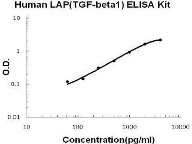- human LAP(TGF-beta1) ELISA Kit was based on standard sandwich enzyme-linked immune-sorbent assay technology. A monoclonal antibody from mouse specific for LAP(TGF-beta1) has been precoated onto 96-well plates. Standards(sf21, L30-R278) and test samples are added to the wells, a biotinylated detection polyclonal antibody from goat specific for LAP(TGF-beta1) is added subsequently and then followed by washing with PBS or TBS buffer. Avidin-Biotin-Peroxidase Complex was added and unbound conjugates were washed away with PBS or TBS buffer. HRP substrate TMB was used to visualize HRP enzymatic reaction. TMB was catalyzed by HRP to produce a blue color product that changed into yellow after adding acidic stop solution. The density of yellow is proportional to the human LAP(TGF-beta1) amount of sample captured in plate.