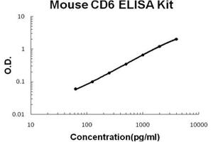 - mouse CD6 ELISA Kit was based on standard sandwich enzyme-linked immune-sorbent assay technology. A monoclonal antibody from rat specific for CD6 has been precoated onto 96-well plates. Standards(NSO, L18-G396) and test samples are added to the wells, a biotinylated detection polyclonal antibody from goat specific for CD6 is added subsequently and then followed by washing with PBS or TBS buffer. Avidin-Biotin-Peroxidase Complex was added and unbound conjugates were washed away with PBS or TBS buffer. HRP substrate TMB was used to visualize HRP enzymatic reaction. TMB was catalyzed by HRP to produce a blue color product that changed into yellow after adding acidic stop solution. The density of yellow is proportional to the mouse CD6 amount of sample captured in plate.