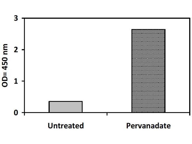 ii. Pervanadate Stimulation of Jurkat Cell Line Jurkat cells were treated or untreated with Pervanadate for 10 min at 37 °C. Cell lysates were analyzed using this phosphoELISA: 0 1 2 3 Untreated Pervanadate OD = 4 50 n m P-1 P-2 P-3 P-4 P-5 Positive control dilution series Assay Diluent Phospho-EphB2 ELISA Kit Protocol 10 X. -