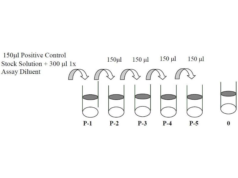 3. Preparation of Positive Control: Briefly spin the Positive Control vial of Item K. Add 250 µL 1x Assay Diluent (Item E, Assay Diluent should be diluted 5-fold with deionized or distilled water before use) into Item K vial to prepare a Positive Control Stock Solution. Dissolve the powder thoroughly by a gentle mix. Add 150 µL prepared Positive Control Stock Solution from the vial of Item K, into a tube with 300 µL 1x Assay Diluent to prepare P-1 (See i. Positive control of part IX. TYPICAL DATA for a typical result). Pipette 300 µL 1x Assay Diluent into each tube. Transfer 150 µL prepared P-1 into a tube with 300 µL 1x Asaay Diluent to produce a dilution series (shown below). Mix each tube thoroughly before the next transfer. 1x Assay Diluent serves as the background. P-1 P-2 P-3 P-4 P-5 0 150 µL 150µl Positive Control Stock Solution 300 µL 1x Assay Diluent 150µl 150 µL 150 µL Phospho-EphB2 ELISA Kit Protocol 6