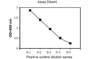 i. Positive Control Jurkat cells were treated with Pervanadate at 37 °C for 10 min. Solubilize cells at 4 x 10 7 cells/mL in lysis buffer. Serial dilutions of lysates were analyzed in this ELISA. Please see step 3 of Part VI Reagent Preparation for detail. 0 0.5 1 1.5 2 OD =4 50 n m