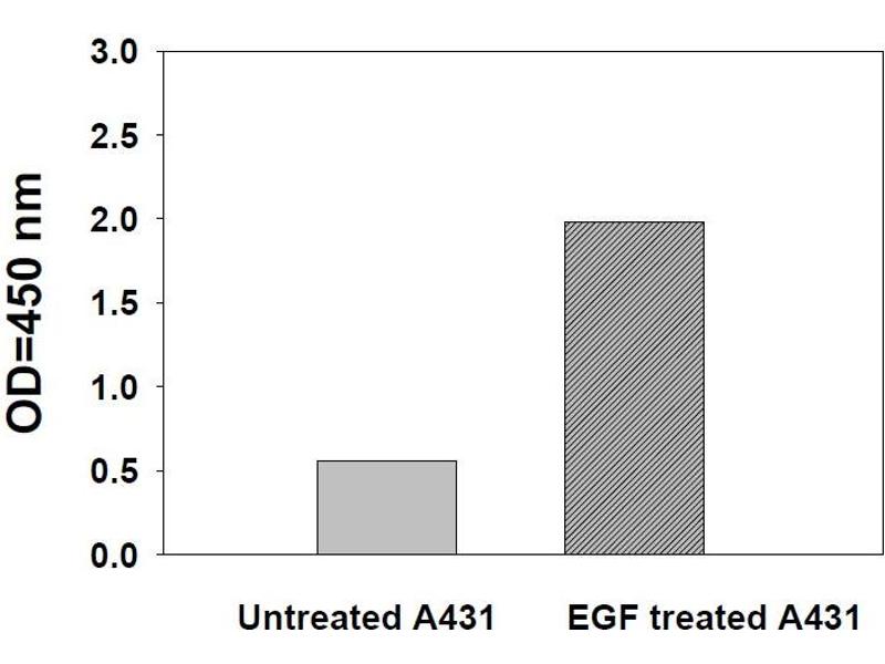 ii. Recombinant Human EGF Stimulation of A431 Cell Lines A431 cells were treated or untreated with 100 ng/mL recombinant human EGF for 10 min. Cell lysates were analyzed using this phosphoELISA: Untreated A431 EGF treated A431 O D =4 50 n m 0.0 0.5 1.0 1.5 2.0 2.5 3.0 Phospho-Stat5 ELISA 11 X -