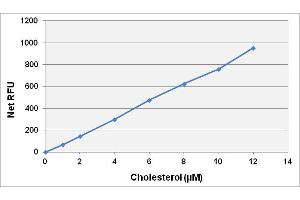 - Calculate the concentration of cholesterol within samples by comparing the sample RFU to the cholesterol standard curve.