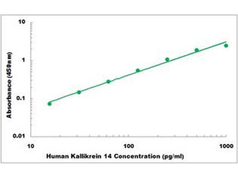 - Sandwich ELISA for quantitative detection of Human Kallikrein 14 concentrations.