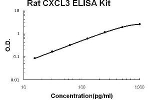 - rat CXCL3 ELISA Kit was based on standard sandwich enzyme-linked immune-sorbent assay technology. A monoclonal antibody from mouse specific for CXCL3 has been precoated onto 96-well plates. Standards(E.coli, R33-S101) and test samples are added to the wells, a biotinylated detection polyclonal antibody from goat specific for CXCL3 is added subsequently and then followed by washing with PBS or TBS buffer. Avidin-Biotin-Peroxidase Complex was added and unbound conjugates were washed away with PBS or TBS buffer. HRP substrate TMB was used to visualize HRP enzymatic reaction. TMB was catalyzed by HRP to produce a blue color product that changed into yellow after adding acidic stop solution. The density of yellow is proportional to the rat CXCL3 amount of sample captured in plate.