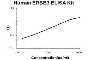 - human ERBB3 ELISA Kit was based on standard sandwich enzyme-linked immune-sorbent assay technology. A monoclonal antibody from mouse specific for ERBB3 has been precoated onto 96-well plates. Standards (NSO, S20-T643) and test samples are added to the wells, a biotinylated detection polyclonal antibody from goat specific for ERBB3 is added subsequently and then followed by washing with PBS or TBS buffer. Avidin-Biotin-Peroxidase Complex was added and unbound conjugates were washed away with PBS or TBS buffer. HRP substrate TMB was used to visualize HRP enzymatic reaction. TMB was catalyzed by HRP to produce a blue color product that changed into yellow after adding acidic stop solution. The density of yellow is proportional to the human ERBB3 amount of sample captured in plate.