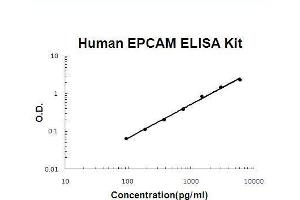 - human EPCAM ELISA Kit was based on standard sandwich enzyme-linked immune-sorbent assay technology. A monoclonal antibody from mouse specific for EPCAM has been precoated onto 96-well plates. Standards(NSO, Q24 - K265) and test samples are added to the wells, a biotinylated detection polyclonal antibody from goat specific for EPCAM is added subsequently and then followed by washing with PBS or TBS buffer. Avidin-Biotin-Peroxidase Complex was added and unbound conjugates were washed away with PBS or TBS buffer. HRP substrate TMB was used to visualize HRP enzymatic reaction. TMB was catalyzed by HRP to produce a blue color product that changed into yellow after adding acidic stop solution. The density of yellow is proportional to the human EPCAM amount of sample captured in plate.