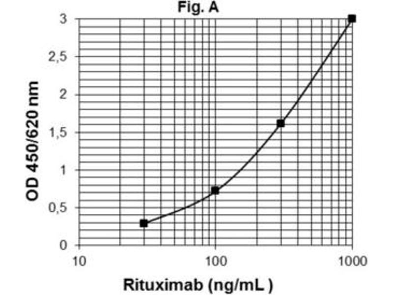 - The Rituximab ELISA is based on Rituximab-specific IG-9D5b monoclonal antibody (mAb). Standards and samples are incubated in the microtitre plate coated with mAb. After incubation, the wells are washed. Anti- human IgG mAb (IG-1B5 clone) conjugated to horse radish peroxidase (HRP) is added and binds to the Fc part of Rituximab specifically captured by the mAb on the surface of the wells. Following incubation, the wells are washed and the bound enzymatic activity is detected by addition of chromogen-substrate. The colour developed is proportional to the amount of Rituximab in the sample or standard. Results of samples can be determined directly by using the standard curve.