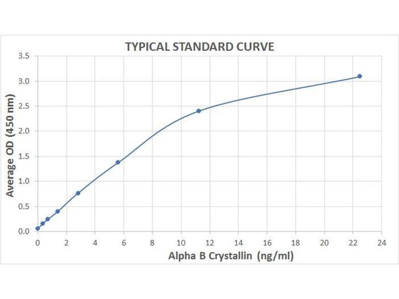 1. Prepare a standard curve to determine the amount of Alpha B Crystallin in an unknown sample. Plot the average absorbance obtained for each standard concentration on the vertical (Y) axis versus the corresponding Alpha B Crystallin concentration on the horizontal (X) axis using graph paper or curve-fitting software.