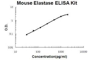 - mouse Elastase ELISA Kit is based on standard sandwich enzyme-linked immune-sorbent assay technology. A monoclonal antibody from rat specific for Elastase has been precoated onto 96-well plates. Standards(Expression system for standard: NSO, Immunogen sequence: S27-R260) and test samples are added to the wells, a biotinylated detection polyclonal antibody from goat specific for Elastase is added subsequently and then followed by washing with PBS or TBS buffer. Avidin-Biotin-Peroxidase Complex is added and unbound conjugates are washed away with PBS or TBS buffer. HRP substrate TMB are used to visualize HRP enzymatic reaction. TMB is catalyzed by HRP to produce a blue color product that changed into yellow after adding acidic stop solution. The density of yellow is proportional to the mouse Elastase amount of sample captured in plate.
