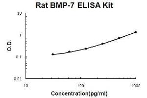 - A monoclonal antibody from mouse specific for BMP-7 has been precoated onto 96-well plates. Standards(Expression system for standard: CHO, Immunogen sequence: S292-H430) and test samples are added to the wells, a biotinylated detection polyclonal antibody from goat specific for BMP-7 is added subsequently and then followed by washing with PBS or TBS buffer. Avidin-Biotin-Peroxidase Complex was added and unbound conjugates were washed away with PBS or TBS buffer. HRP substrate TMB was used to visualize HRP enzymatic reaction. TMB was catalyzed by HRP to produce a blue color product that changed into yellow after adding acidic stop solution. The density of yellow is proportional to the rat BMP-7 amount of sample captured in plate.