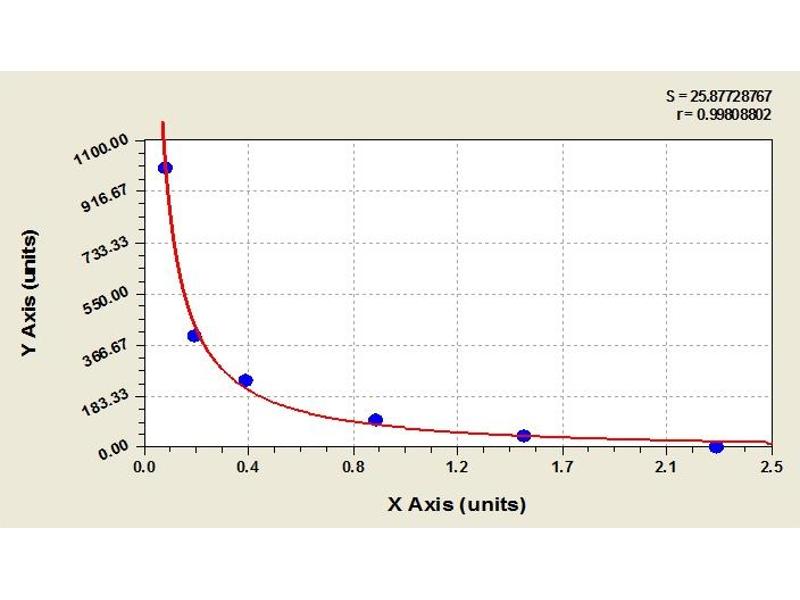 Create a standard curve by reducing the data using computer software capable of generating a four parameter logistic (4-PL) curve fit. As an alternative, construct a standard curve by plotting the mean absorbance for each standard on the x-axis against the concentration on the y-axis and draw a best fit curve through the points on the graph. The data may be linearized by plotting the log of the target antigen concentration versus the log of the O.D. and the best fit line can be determined by regression analysis. This procedure will produce an adequate but less precise fit of the data.