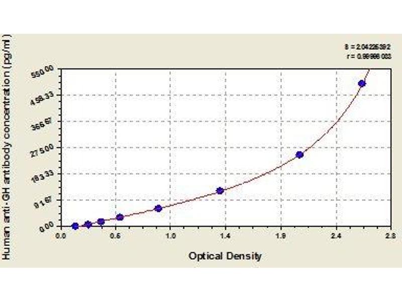 - The microtiter plate provided in this kit has been pre-coated with GH antigen. Standards or samples are then added to the appropriate microtiter plate wells with biotin-conjugated GH and Avidin conjugated to Horseradish Peroxidase (HRP) is added to each microplate well and incubated. Then a TMB (3,3',5,5' tetramethyl-benzidine) substrate solution is added to each well. Only those wells that contain GH Ab, biotin-conjugated GH and enzyme-conjugated Avidin will exhibit a change in color. The enzyme-substrate reaction is terminated by the addition of a sulphuric acid solution and the color change is measured spectrophotometrically at a wavelength of 450 nm ± 2 nm. The concentration of GH Ab in the samples is then determined by comparing the O.D. of the samples to the standard curve.