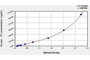 - Antibody specific for C7 has been pre-coated onto a microplate. Standards and samples are pipetted into the wells and any C7 present is bound by the immobilized antibody. After removing any unbound substances, a biotin-conjugated antibody specific for C7 is added to the wells. After washing, avidin conjugated Horseradish Peroxidase (HRP) is added to the wells. Following a wash to remove any unbound avidin-enzyme reagent, a substrate solution is added to the wells and color develops in proportion to the amount of C7 bound in the initial step. The color development is stopped and the intensity of the color is measured.