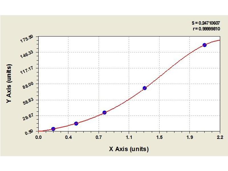 Create a standard curve by reducing the data using computer software capable of generating a four parameter logistic (4-PL) curve fit. As an alternative, construct a standard curve by plotting the mean absorbance for each standard on the x-axis against the concentration on the y-axis and draw a best fit curve through the points on the graph. The data may be linearized by plotting the log of the target antigen concentration versus the log of the O.D. and the best fit line can be determined by regression analysis. This procedure will produce an adequate but less precise fit of the data.
