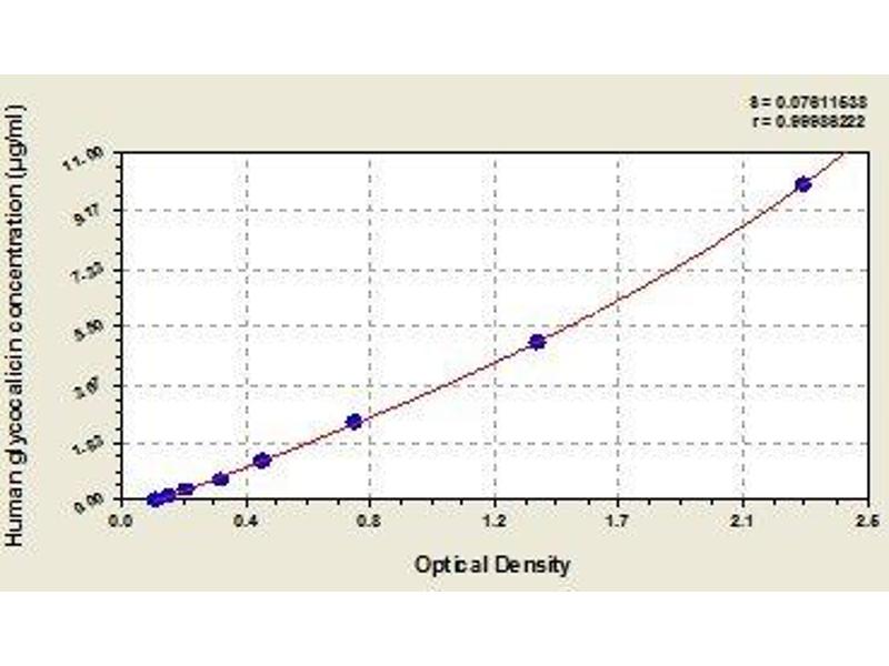 - This assay employs the quantitative sandwich enzyme immunoassay technique. Antibody specific for glycocalicin has been pre-coated onto a microplate. Standards and samples are pipetted into the wells and any glycocalicin present is bound by the immobilized antibody. After removing any unbound substances, a biotin-conjugated antibody specific for glycocalicin is added to the wells. After washing, avidin conjugated Horseradish Peroxidase (HRP) is added to the wells. Following a wash to remove any unbound avidin-enzyme reagent, a substrate solution is added to the wells and color develops in proportion to the amount of glycocalicin bound in the initial step. The color development is stopped and the intensity of the color is measured.