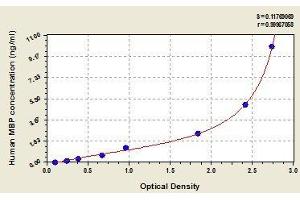- This assay employs the quantitative sandwich enzyme immunoassay technique. Antibody specific for MBP has been pre-coated onto a microplate. Standards and samples are pipetted into the wells and any MBP present is bound by the immobilized antibody. After removing any unbound substances, a biotin-conjugated antibody specific for MBP is added to the wells. After washing, avidin conjugated Horseradish Peroxidase (HRP) is added to the wells. Following a wash to remove any unbound avidin-enzyme reagent, a substrate solution is added to the wells and color develops in proportion to the amount of MBP bound in the initial step. The color development is stopped and the intensity of the color is measured.