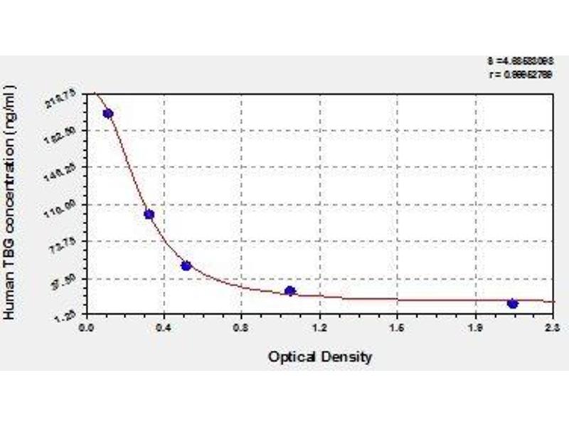 - This assay employs the competitive inhibition enzyme immunoassay technique. The microtiter plate provided in this kit has been pre-coated with an antibody specific to TBG. Standards or samples are added to the appropriate microtiter plate wells with Biotin-conjugated TBG. A competitive inhibition reaction is launched between TBG (Standards or samples) and Biotin-conjugated TBG with the pre-coated antibody specific for TBG. The more amount of TBG in samples, the less antibody bound by Biotin-conjugated TBG. After washing, avidin conjugated Horseradish Peroxidase (HRP) is added to the wells. Substrate solution is added to the wells and the color develops in opposite to the amount of TBG in the sample. The color development is stopped and the intensity of the color is measured.
