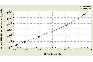 - This assay employs the quantitative sandwich enzyme immunoassay technique. Antibody specific for HPCⅢ has been pre-coated onto a microplate. Standards and samples are pipetted into the wells with antibody specific for HPCⅢ. Any HPCⅢ present is bound by the immobilized antibody. After washing, goat-anti-rabbit IgG antibody conjugated Horseradish Peroxidase (HRP) is added to the wells. Following a wash to remove any unbound reagent, a substrate solution is added to the wells and color develops in proportion to the amount of HPCⅢ bound in the initial step. The color development is stopped and the intensity of the color is measured.