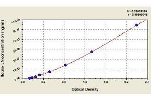 - This assay employs the quantitative sandwich enzyme immunoassay technique. Antibody specific for LN has been pre-coated onto a microplate. Standards and samples are pipetted into the wells and any LN present is bound by the immobilized antibody. After removing any unbound substances, a biotin-conjugated antibody specific for LN is added to the wells. After washing, avidin conjugated Horseradish Peroxidase (HRP) is added to the wells. Following a wash to remove any unbound avidin-enzyme reagent, a substrate solution is added to the wells and color develops in proportion to the amount of LN bound in the initial step. The color development is stopped and the intensity of the color is measured.