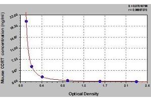 - This assay employs the competitive inhibition enzyme immunoassay technique. The microtiter plate provided in this kit has been pre-coated with goat-anti-rabbit antibody. Standards or samples are added to the appropriate microtiter plate wells with an antibody specific for CORT and Horseradish Peroxidase (HRP) conjugated CORT. The competitive inhibition reaction is launched between with HRP labeled CORT and unlabeled CORT with the antibody. A substrate solution is added to the wells and the color develops in opposite to the amount of CORT in the sample. The color development is stopped and the intensity of the color is measured.