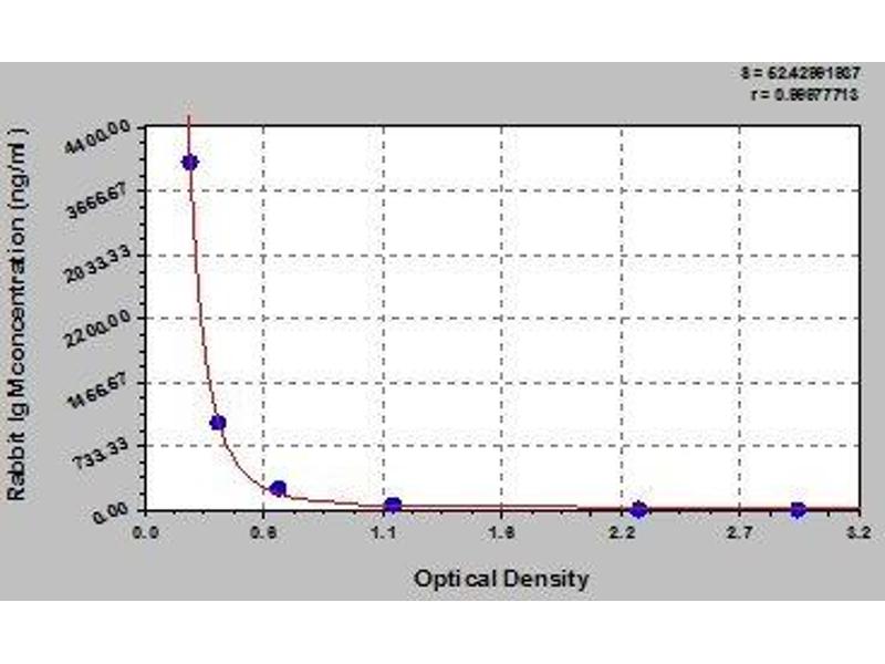 Create a standard curve by reducing the data using computer software capable of generating a four parameter logistic (4-PL) curve fit. As an alternative, construct a standard curve by plotting the mean absorbance for each standard on the x-axis against the concentration on the y-axis and draw a best fit curve through the points on the graph. The data may be linearized by plotting the log of the target antigen concentration versus the log of the O.D. and the best fit line can be determined by regression analysis. This procedure will produce an adequate but less precise fit of the data.