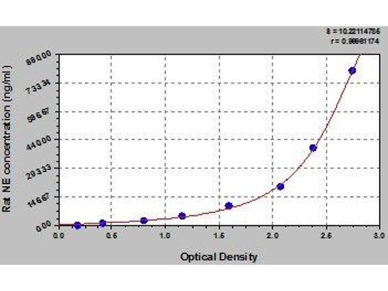 This assay employs the quantitative sandwich enzyme immunoassay technique. Antibody specific for NE has been pre-coated onto a microplate. Standards and samples are pipetted into the wells and any NE present is bound by the immobilized antibody. After removing any unbound substances, a biotin-conjugated antibody specific for NE is added to the wells. After washing, avidin conjugated Horseradish Peroxidase (HRP) is added to the wells. Following a wash to remove any unbound avidin-enzyme reagent, a substrate solution is added to the wells and color develops in proportion to the amount of NE bound in the initial step. The color development is stopped and the intensity of the color is measured.