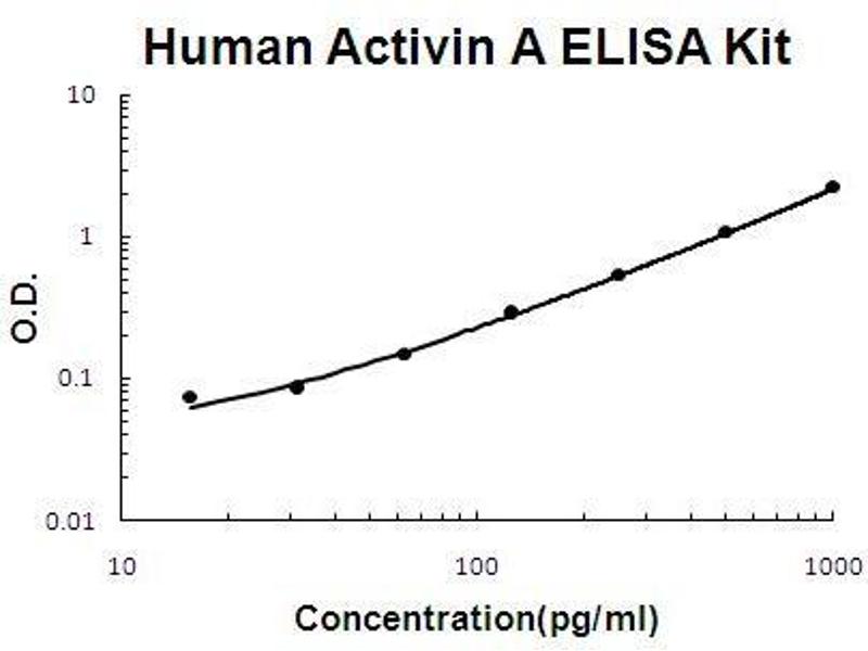 Background: Activin A is a homodimer of 14 kDa beta-A. Activin A, a cytokine member of the transforming growth factor-beta superfamily, is expressed locally by the mesenchymal component of the hemopoietic microenvironment. Its expression is regulated on the mRNA level by different cytokines, and the biological activity of the protein is tightly controlled by several inhibitory molecules. Inhibins and activins are members of the transforming growth factor beta superfamily and are known to modulate the growth and differentiation of several cell types. Inhibins and activins inhibit and activate, respectively, the secretion of follitropin by the pituitary gland. Inhibins/activins are involved in regulating a number of diverse functions such as hypothalamic and pituitary hormone secretion, gonadal hormone secretion, germ cell development and maturation, erythroid differentiation, insulin secretion, nerve cell survival, embryonic axial development or bone growth, depending on their subunit composition. Inhibins appear to oppose the functions of activins. The standard product used in this kit is recombinant Activin A, which is composed of two single chains of 116 amino acids with the molecular mass of 26KDa.