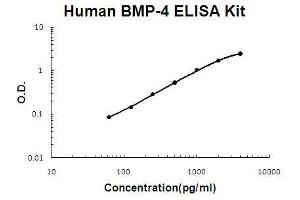 Background: Bone morphogenetic protein 4 is a protein that in humans is encoded by the BMP4 gene which is located to 14q22-q23.1, The protein encoded by this gene is a member of the bone morphogenetic protein family which is part of the transforming growth factor-beta superfamily. BMP4 is a polypeptide belonging to the TGF-beta superfamily of proteins. It, like other bone morphogenetic proteins, is involved in bone and cartilage development, specifically tooth and limb development and fracture repair. It has been shown to be involved in muscle development, bone mineralization, and uteric bud development. BMP4 has also been implicated in Fibrodysplasia Ossificans Progressiva in which it is underexpressed. In human embryonic development, BMP4 is a critical signaling molecule required for the early differentiation of the embryo and establishing of a dorsal-ventral axis. BMP4 is secreted from the dorsal portion of the notochord, and it acts in concert with sonic hedgehog(released from the ventral portion of the notochord) to establish a dorsal-ventral axis for the differentiation of later structures. BMP4 stimulates differentiation of overlying ectodermal tissue. Inhibition of the BMP4 signal(by chordin, noggin, or follistatin) causes the ectoderm to differentiate into the neural plate. The standard product used in this kit is recombinant BMP-4 with the molecular mass of 26KDa.