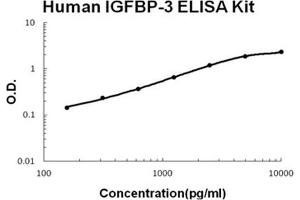 Background: Insulin-like growth factor(IGF)-binding protein-3(IGFBP-3) is a major determinant of circulating levels of the IGFs and is clinically useful for the evaluation of GH deficiency and for predicting the response to GH treatment. The circulating level of IGFBP-3 is inversely related to the risk of several common cancers, and that antiproliferative agents such as antiestrogens and retinoids act in part by up-regulating IGFBP-3 gene(IGFBP3) expression. Insulin-like growth factor-binding protein(IGFBP)-3, well characterized as the carrier of insulin-like growth factor(IGF), has been reported to have intrinsic bioactivity that is independent of IGF binding. IGFBP-3 has an IGF-independent, antiproliferative effect in undifferentiated and early differentiated but not in terminally differentiated chondrocytes. IGFBP-3 possesses both growth-inhibitory and potentiating effects on cells that are independent of IGF action and are mediated through specific. IGFBP-3 binding proteins/receptors locate at the cell membrane, cytosol, or nuclear compartments and in the extrIGFBP-3llular matrix. IGFBP3 is also located on chromosome 7. The standard product used in this kit is recombinant human IGFBP-3, consisting of 265 amino acids with the molecular mass of 29 kDa. As a result of glycosylation, the molecular mass is 41KDa.