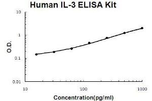 - human IL-3 ELISA Kit was based on standard sandwich enzyme-linked immune-sorbent assay technology. A monoclonal antibody from mouse specific for IL-3 has been precoated onto 96-well plates. Standards (E.coli,A20-F152) and test samples are added to the wells, a biotinylated detection polyclonal antibody from goat specific for IL-3 is added subsequently and then followed by washing with PBS or TBS buffer. Avidin-Biotin-Peroxidase Complex was added and unbound conjugates were washed away with PBS or TBS buffer. HRP substrate TMB was used to visualize HRP enzymatic reaction. TMB was catalyzed by HRP to produce a blue color product that changed into yellow after adding acidic stop solution. The density of yellow is proportional to the human IL-3 amount of sample captured in plate.