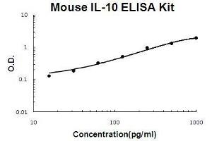 - mouse IL-10 ELISA Kit was based on standard sandwich enzyme-linked immune-sorbent assay technology. A monoclonal antibody from rat specific for IL-10 has been precoated onto 96-well plates. Standards(E.coli, S19-S178) and test samples are added to the wells, a biotinylated detection polyclonal antibody from goat specific for IL-10 is added subsequently and then followed by washing with PBS or TBS buffer. Avidin-Biotin-Peroxidase Complex was added and unbound conjugates were washed away with PBS or TBS buffer. HRP substrate TMB was used to visualize HRP enzymatic reaction. TMB was catalyzed by HRP to produce a blue color product that changed into yellow after adding acidic stop solution. The density of yellow is proportional to the mouse IL-10 amount of sample captured in plate.