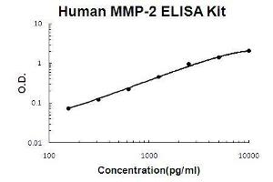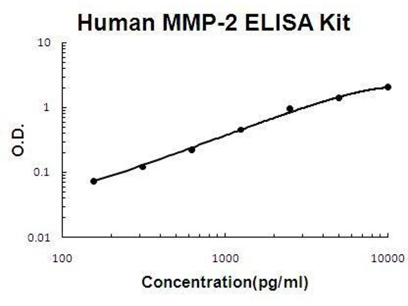 Background: Type IV collagenase, 72-kD, is officially designated matrix metalloproteinase-2(MMP2). It is also known as gelatinase, 72-kD. MMP-2 plays an essential role in angiogenesis and arteriogenesis, two processes critical to restoration of tissue perfusion after ischemia. MMP-2 expression is increased in tissue ischemia, but the responsible mechanisms remain unknown. Matrix metalloproteinases(MMPs) catalyze extracellular matrix degradation. Control of their activity is a promising target for therapy of diseases characterized by abnormal connective tissue turnover. MMPs are expressed as latent proenzymes that are activated by proteolytic cleavage that triggers a conformational change in the propeptide(cysteine switch). The structure of proMMP-2 reveals how the propeptide shields the catalytic cleft and that the cysteine switch may operate through cleavage of loops essential for propeptide stability. The gene is localized to 16q21 using somatic cell hybrids and in situ hybridization. The standard product used in this kit is recombinant human MMP-2, consisting of 631 amino acids with the molecular mass of 71KDa. The detected MMP-2 includes zymogen and active enzyme.