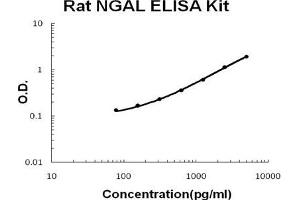 - rat NGAL ELISA Kit was based on standard sandwich enzyme-linked immune-sorbent assay technology. A monoclonal antibody from mouse specific for NGAL has been precoated onto 96-well plates. Standards(NSO, Q21-N198) and test samples are added to the wells, a biotinylated detection polyclonal antibody from goat specific for NGAL is added subsequently and then followed by washing with PBS or TBS buffer. Avidin-Biotin-Peroxidase Complex was added and unbound conjugates were washed away with PBS or TBS buffer. HRP substrate TMB was used to visualize HRP enzymatic reaction. TMB was catalyzed by HRP to produce a blue color product that changed into yellow after adding acidic stop solution. The density of yellow is proportional to the rat NGAL amount of sample captured in plate.