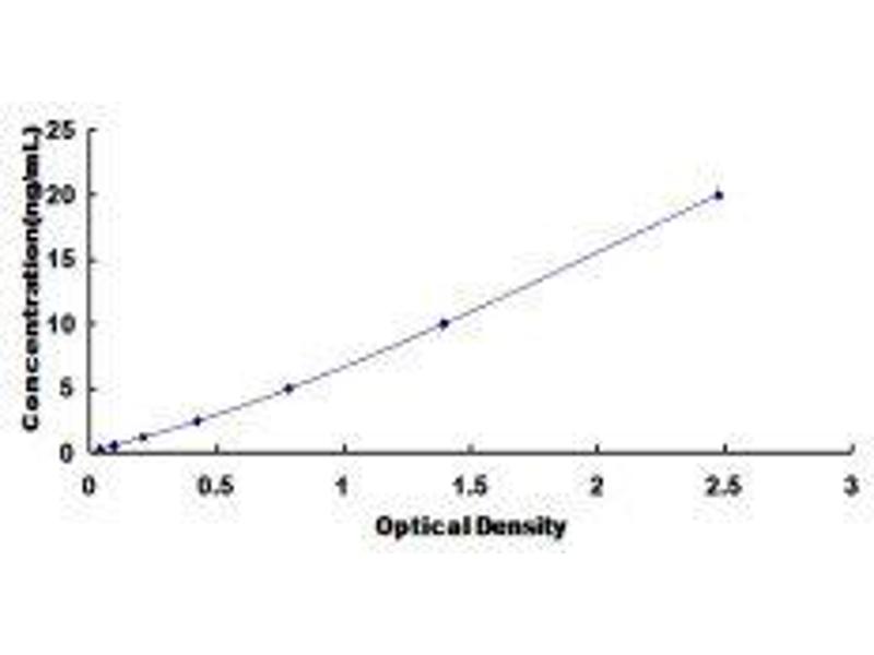 2. Standard - Reconstitute the Standard with 0.5 mL of Standard Diluent, keep for 10 minutes at room temperature, shake gently (not to foam). The concentration of the standard in the stock solution is 10 ng/mL. Prepare 7 tubes containing 0.25 mL Standard Diluent and produce a double dilution series. Mix each tube thoroughly before the next transfer. Set up 7 points of diluted standard such as 10 ng/mL, 5 ng/mL, 2.5 ng/mL, 1.25 ng/mL, 0.625 ng/mL, 0.312 ng/mL, 0.156 ng/mL, and the last microcentrifuge tube with Standard Diluent is the blank as 0 ng/mL.