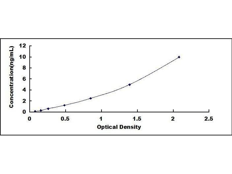 2. Standard - Reconstitute the Standard with 1.0 mL of Standard Diluent, keep for 10 minutes at room temperature, shake gently (not to foam). The concentration of the standard in the stock solution is 100 ng/mL. Firstly dilute the stock solution to 10 ng/mL and the diluted standard serves as the highest standard (10 ng/mL). Then prepare 7 tubes containing 0.5 mL Standard Diluent and use the diluted standard to produce a double dilution series. Mix each tube thoroughly before the next transfer. Set up 7 points of diluted standard such as 10 ng/mL, 5 ng/mL, 2.5 ng/mL, 1.25 ng/mL, 0.625 ng/mL, 0.312 ng/mL, 0.156 ng/mL, and the last microcentrifuge tube with Standard Diluent is the blank as 0 ng/mL.