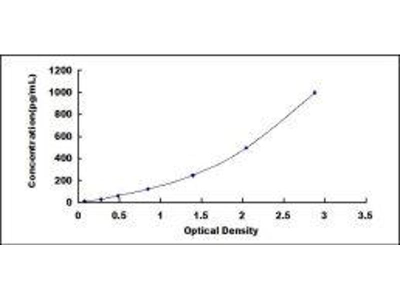 In order to make the calculation easier, we plot the O.D. value of the standard (X-axis) against the known concentration of the standard (Y-axis), although concentration is the independent variable and O.D. value is the dependent variable. However, the O.D. values of the standard curve may vary according to the conditions of assay performance (e.g. operator, pipetting technique, washing technique or temperature effects), plotting log of the data to establish standard curve for each test is recommended. Typical standard curve below is provided for reference only. -
