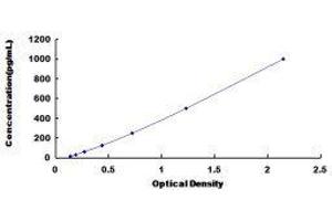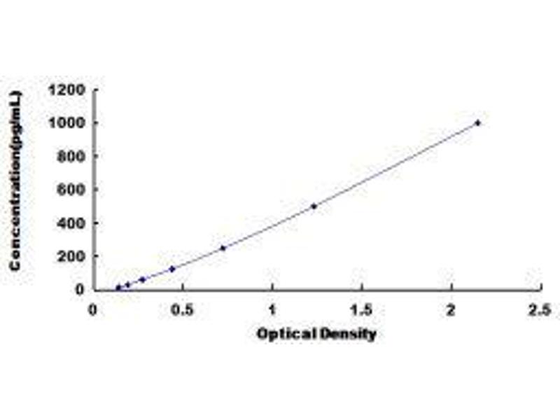 In order to make the calculation easier, we plot the O.D. value of the standard (X-axis) against the known concentration of the standard (Y-axis), although concentration is the independent variable and O.D. value is the dependent variable. However, the O.D. values of the standard curve may vary according to the conditions of assay performance (e.g. operator, pipetting technique, washing technique or temperature effects), plotting log of the data to establish standard curve for each test is recommended. Typical standard curve below is provided for reference only. -