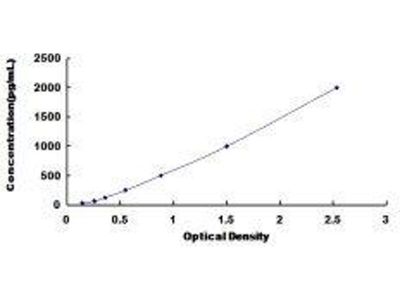 In order to make the calculation easier, we plot the O.D. value of the standard (X-axis) against the known concentration of the standard (Y-axis), although concentration is the independent variable and O.D. value is the dependent variable. However, the O.D. values of the standard curve may vary according to the conditions of assay performance (e.g. operator, pipetting technique, washing technique or temperature effects), plotting log of the data to establish standard curve for each test is recommended. Typical standard curve below is provided for reference only. -