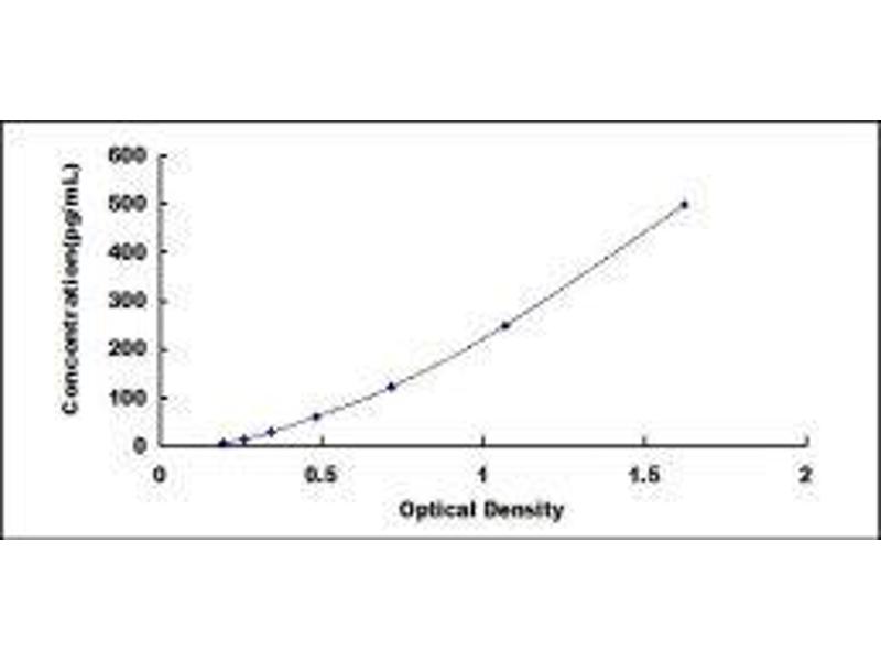 In order to make the calculation easier, we plot the O.D. value of the standard (X-axis) against the known concentration of the standard (Y-axis), although concentration is the independent variable and O.D. value is the dependent variable. However, the O.D. values of the standard curve may vary according to the conditions of assay performance (e.g. operator, pipetting technique, washing technique or temperature effects), plotting log of the data to establish standard curve for each test is recommended. Typical standard curve below is provided for reference only. -